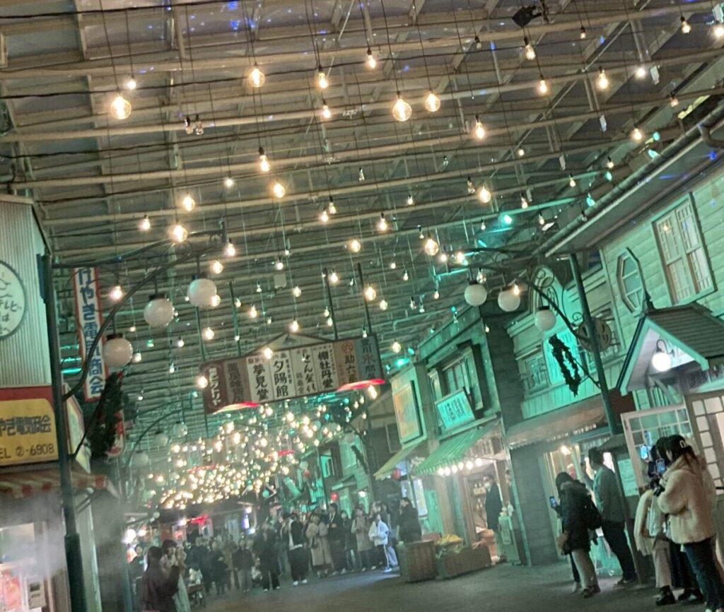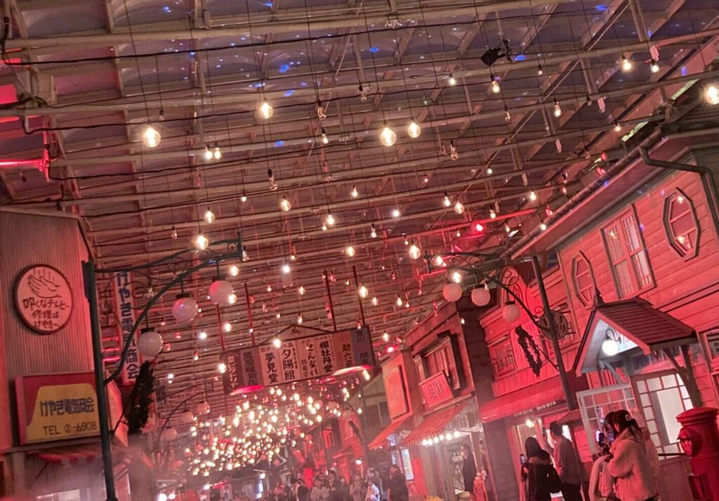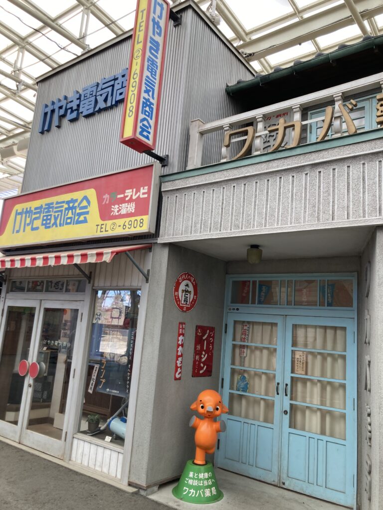 入園したらまず目に入るのが「夕日の丘商店街」です。