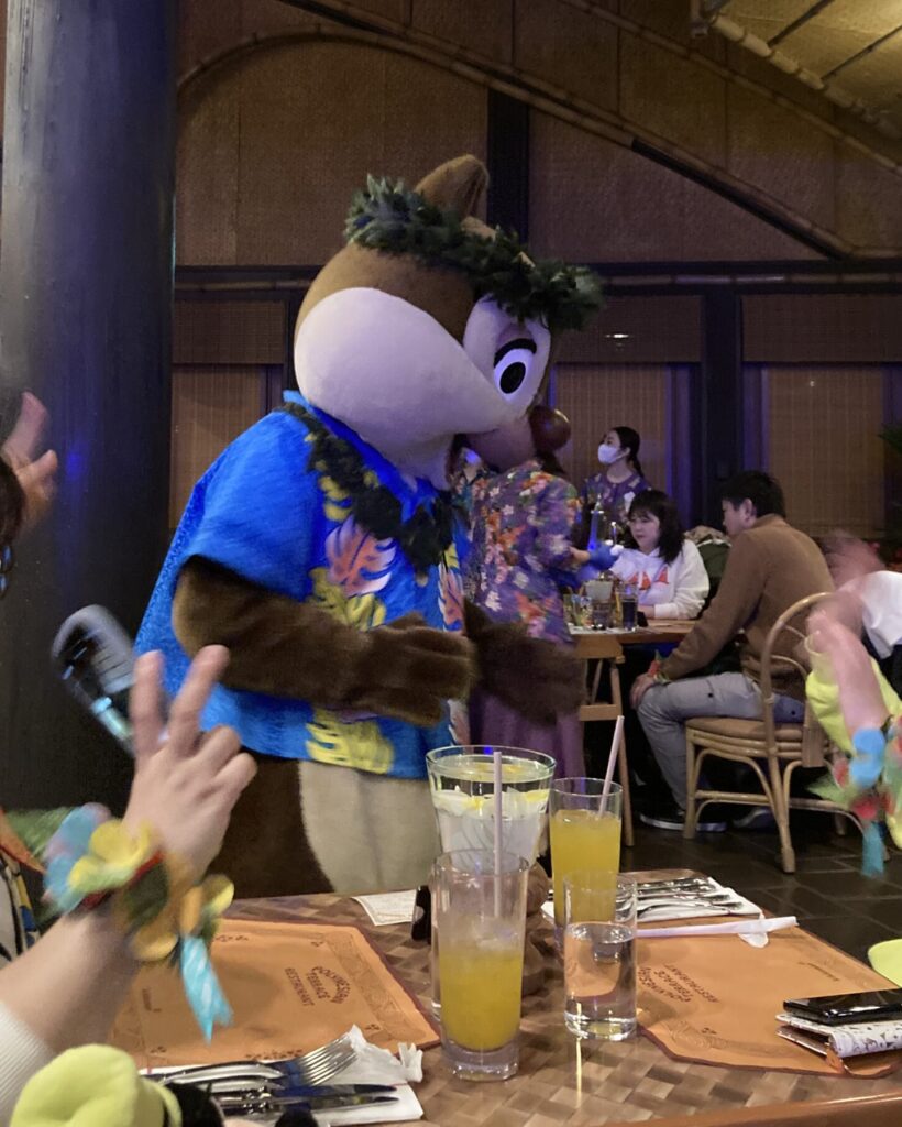 なぜなら、ここのショーレストランはダイヤモンドホースシューと違い、グリーティング(席は関係なくミッキーたちが全テーブルに来てくれる)のメリットが大きいからです。